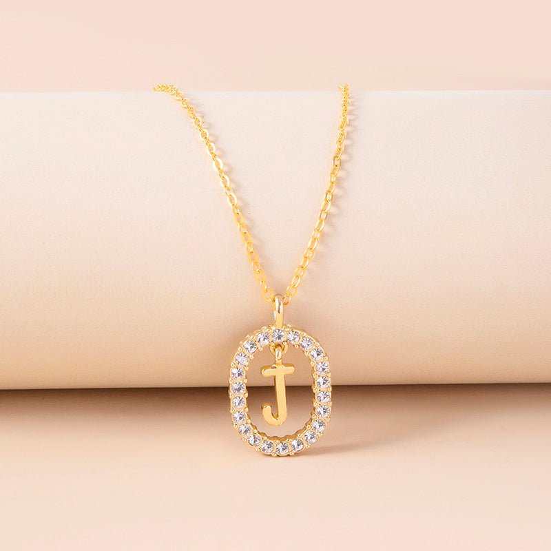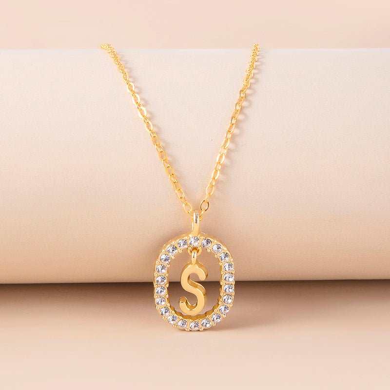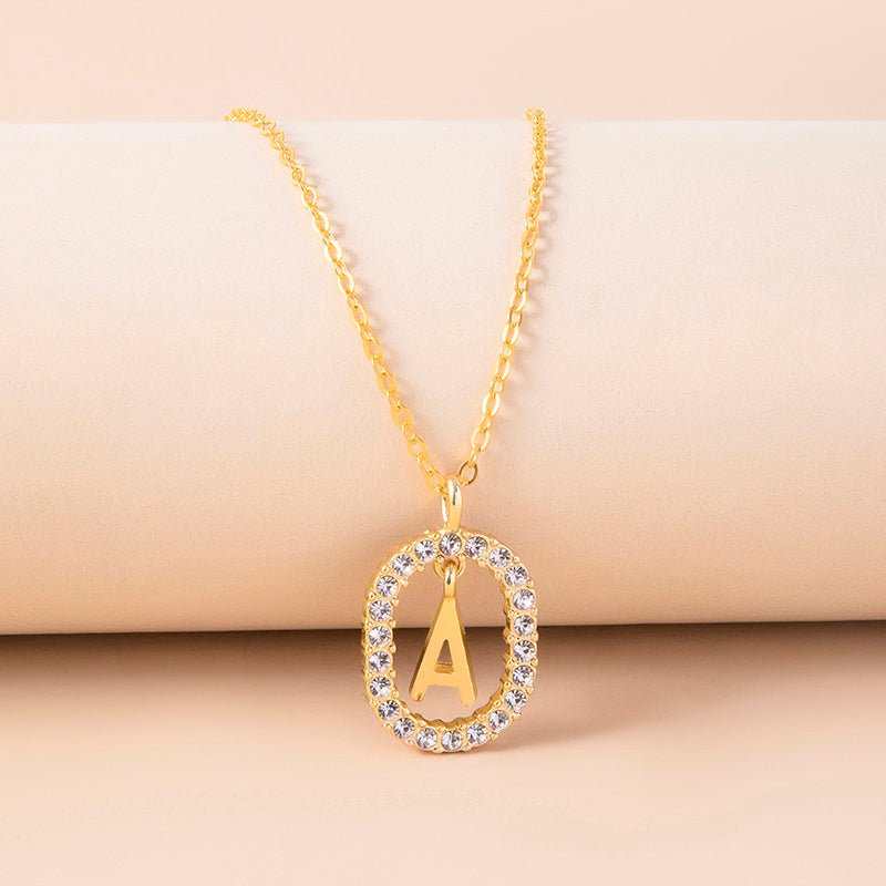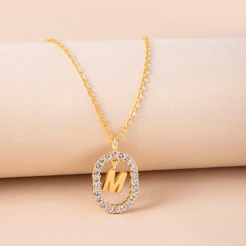 Crystal Letter Necklace Gold Name Initial Alphabet Oval Pendant Necklaces For Women