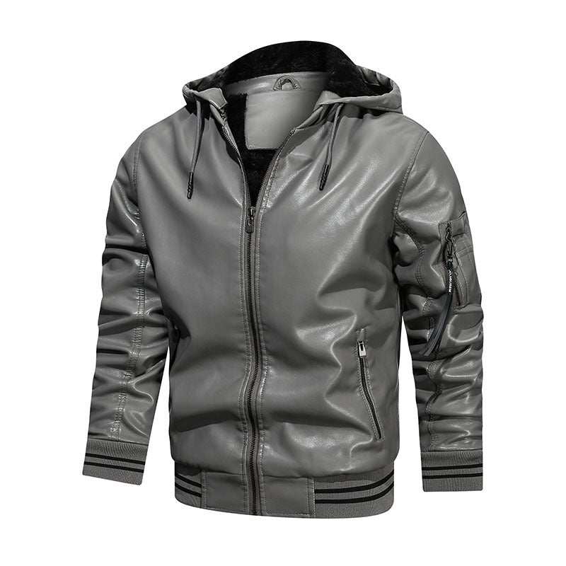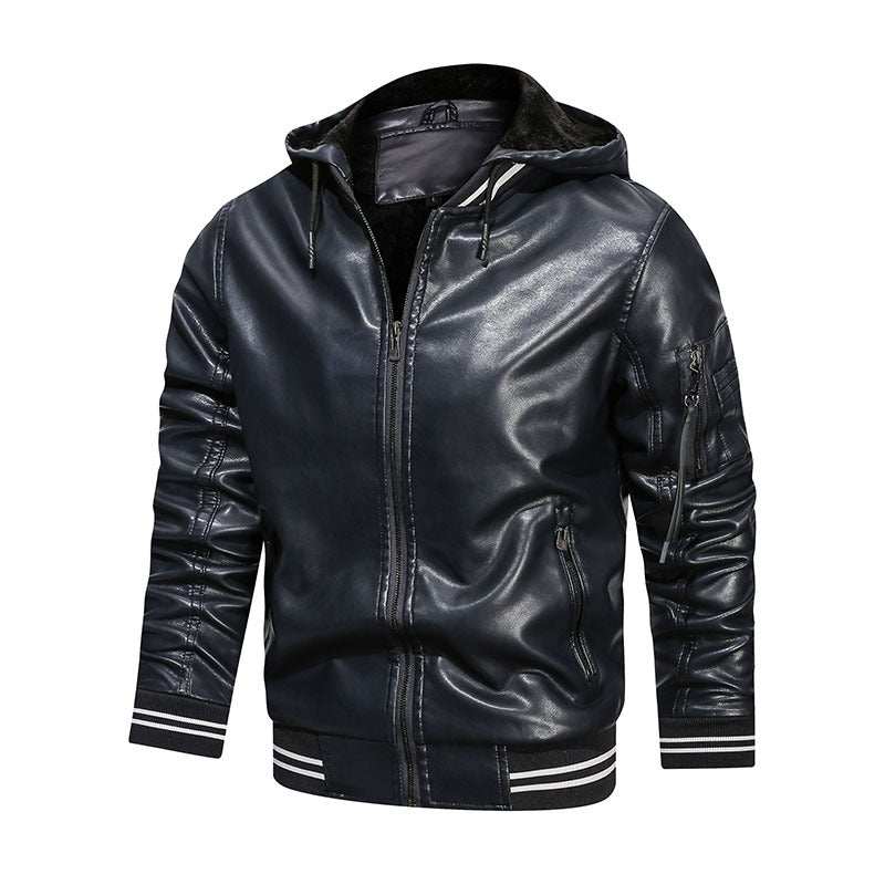 Men's Jacket Spot Hooded Multi-pocket Leather Jacket Men