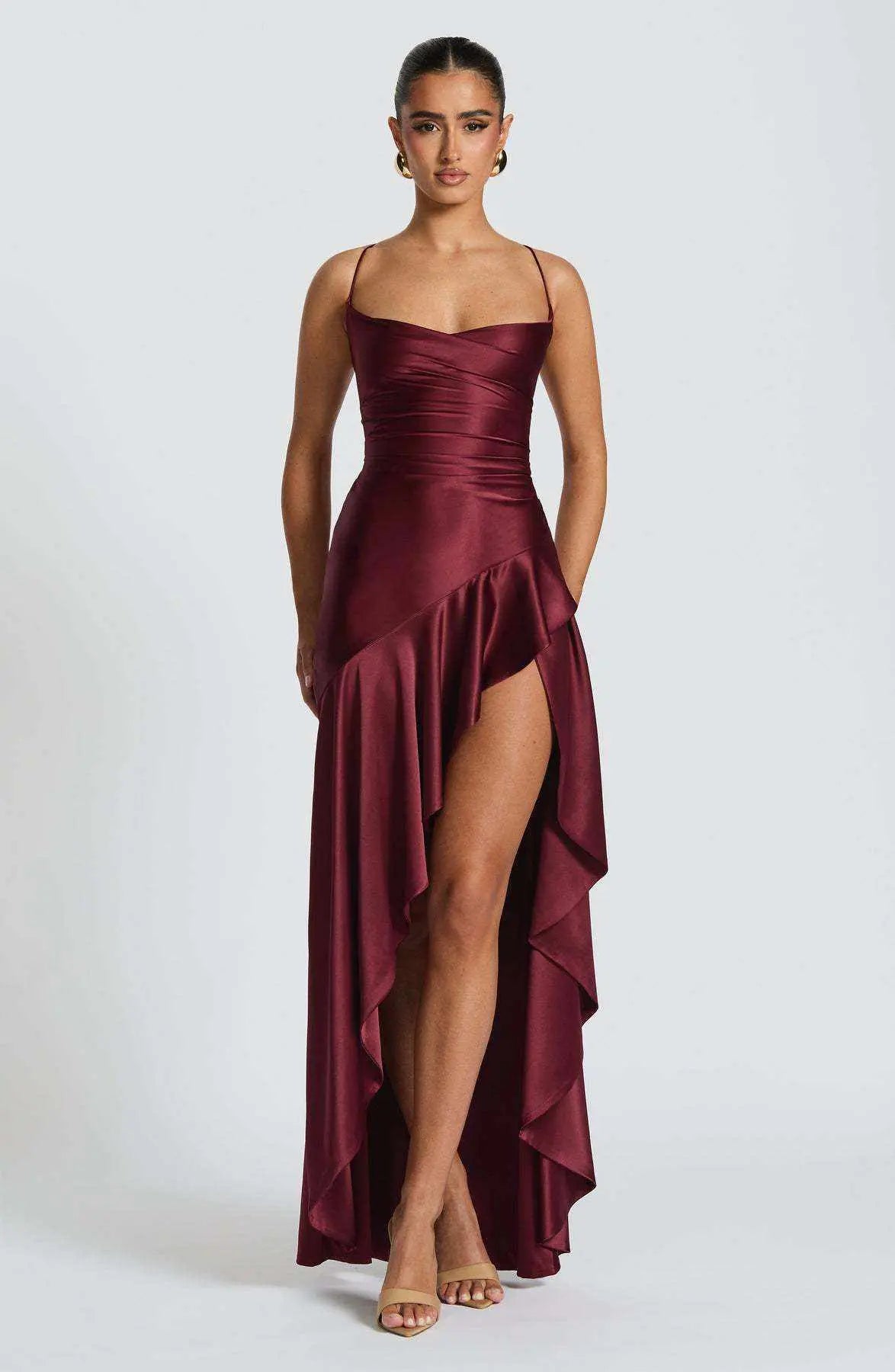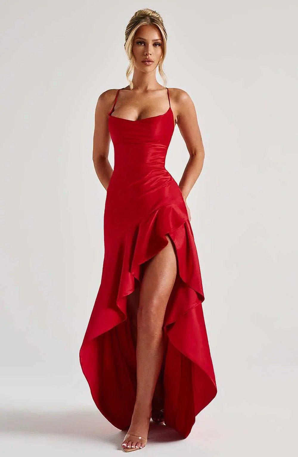 Women's Backless Ruffles Irregular Dress Summer Fashion Evening Party Club Split Suspender Maxi Dresses Clothing